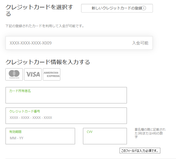 おかしいな?カード情報は正しいはずなのにエラーが出て入金できないぞ?