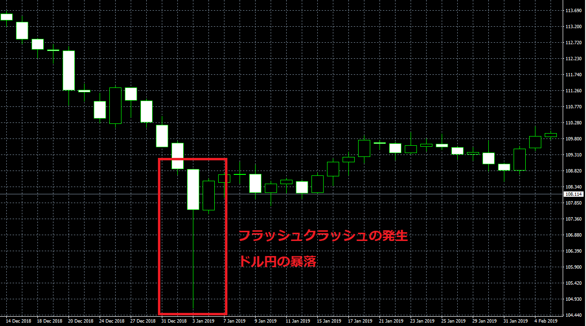 2019年は年明けとともにドル円が暴落しました。1月3日早朝の出来事は一部の投資家にとって大きな打撃となりました。